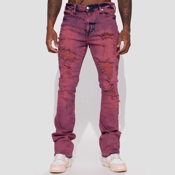 AeeDenim, pantalones largos de lavado Vintage con estampado de lámina de calle recta apilada carmesí de alta calidad para hombre, personaliza tu logotipo, tamaño de Color