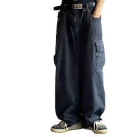 Мужские свободные черные джинсы-карго оверсайз в корейском стиле, уличная мода, хип-хоп, харадзюку, прямые штанины, однотонные, широкие, зимние
