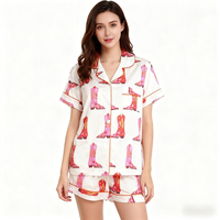 Женский дышащий винтажный повседневный комплект для сна с коротким рукавом и эластичным поясом, ODM, весна-лето, с принтом, в стиле ботинок